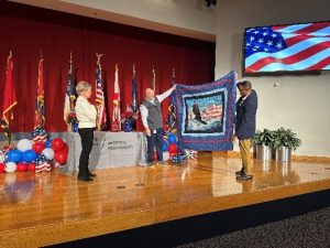For the first time, the Veteran’s Association presented a handmade quilt given by the Itawamba Memory Makers Quilting Group of Fulton, Mississippi to an honoree.